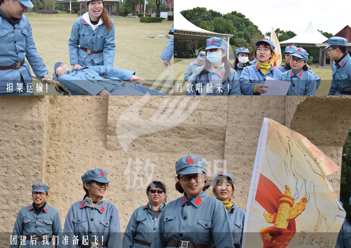 2020年11月,信誼藥廠的伙伴們開展了以“挑戰自我,凝心聚力,共筑精彩”為主題的黨建團建活動,圍繞紅色主題,換上藍色中山裝,在草坪上開展一系列唱紅歌,做擔架,猜偉人等回憶黨的歷史,復刻愛國活動的主題團建。