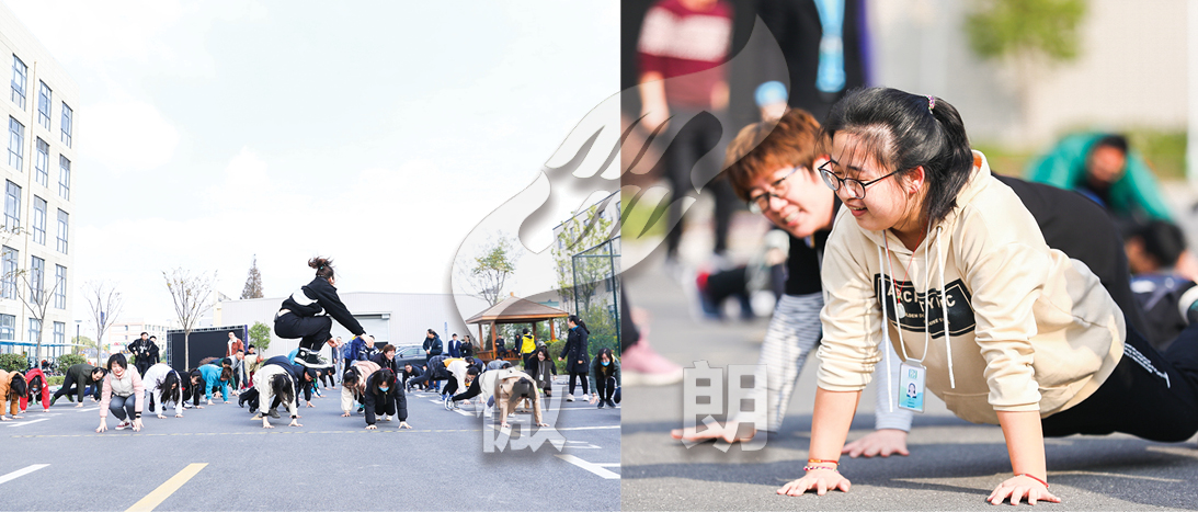 大家伙兒跟著領(lǐng)舞扭起身子,歡聲笑語不斷,為了確保等下活動中減少抽筋等小意外,接近10分鐘的熱身操跳完有的人已經(jīng)一身汗了。