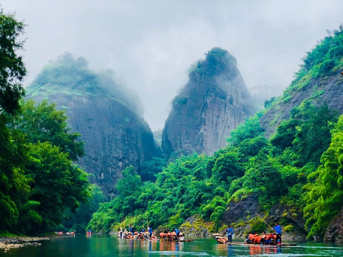其實就我個人來說,我最喜歡春末夏初的九曲溪,雖然有可能會遇上雨天,但是雨中九曲真的是和仙境一樣,剛發芽的青山和綠水,雨中的云霧。活脫脫的一副輕舟游于云海之中,山若隱若現于云霧之中的蓬萊美景。