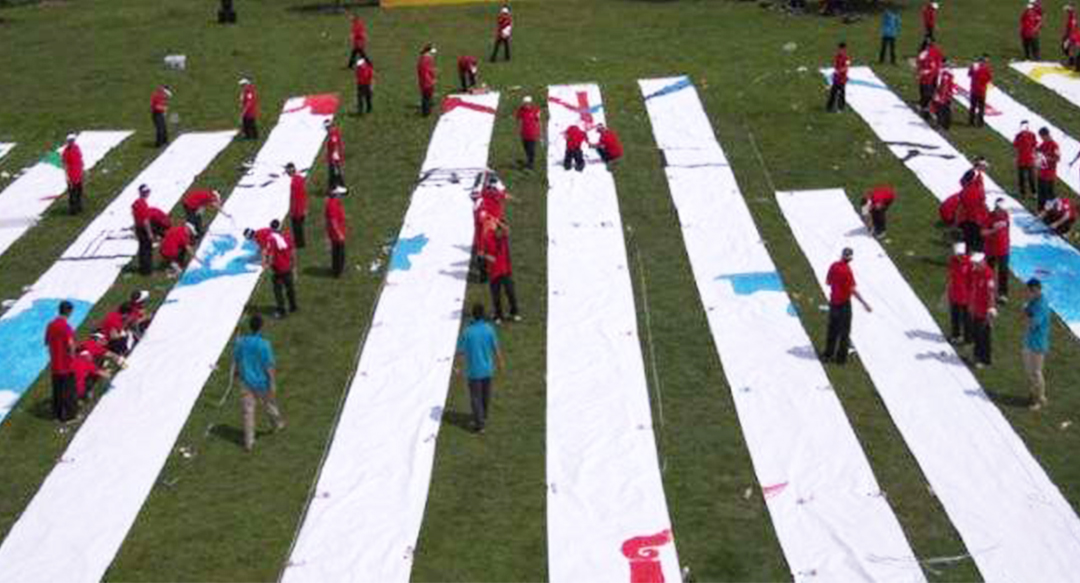 通過團隊共同努力完成一幅具有企業文化代表意義的畫,