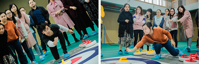 教練會細(xì)心講解冰壺的游戲規(guī)則,并親自示范冰壺額操作技巧和對陣打發(fā)。